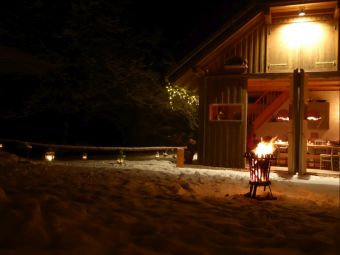 Im Tal geht es ca. 15 min an der Straße entlang und dann mit Fackel oder Laterne die Forstrasse durch den Wald weitere 20-40 min hinauf.